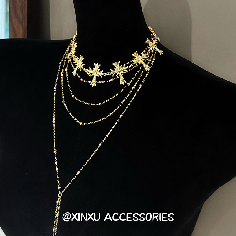 [神の救い] レトロクロスタッセルネックレスニッチデザインエキゾチックな気質ファッション誇張ネックレス