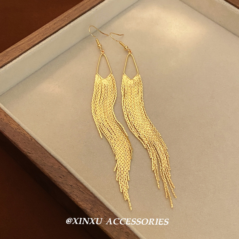 「星の光ガオ」フランスの金色のチェーンのタッセルのイヤリングinsの大衆の気質の高級感の大気の耳飾りの女性