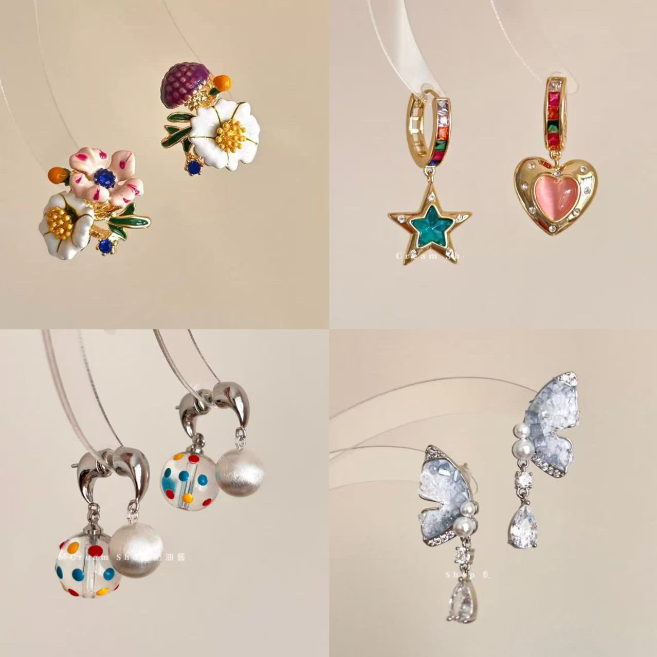 レトロな色の花の星のイヤリングの小さい大衆のデザイン感insシンプルなファッションの非対称の百合の気質のイヤリング