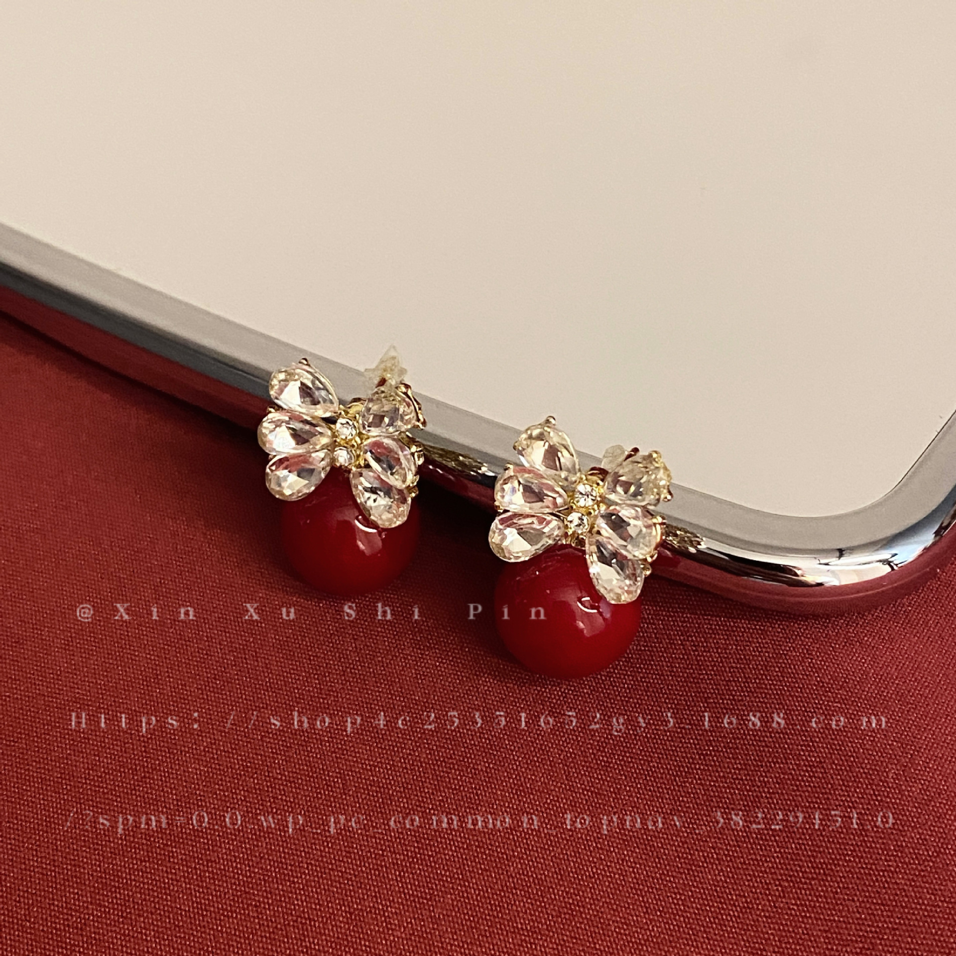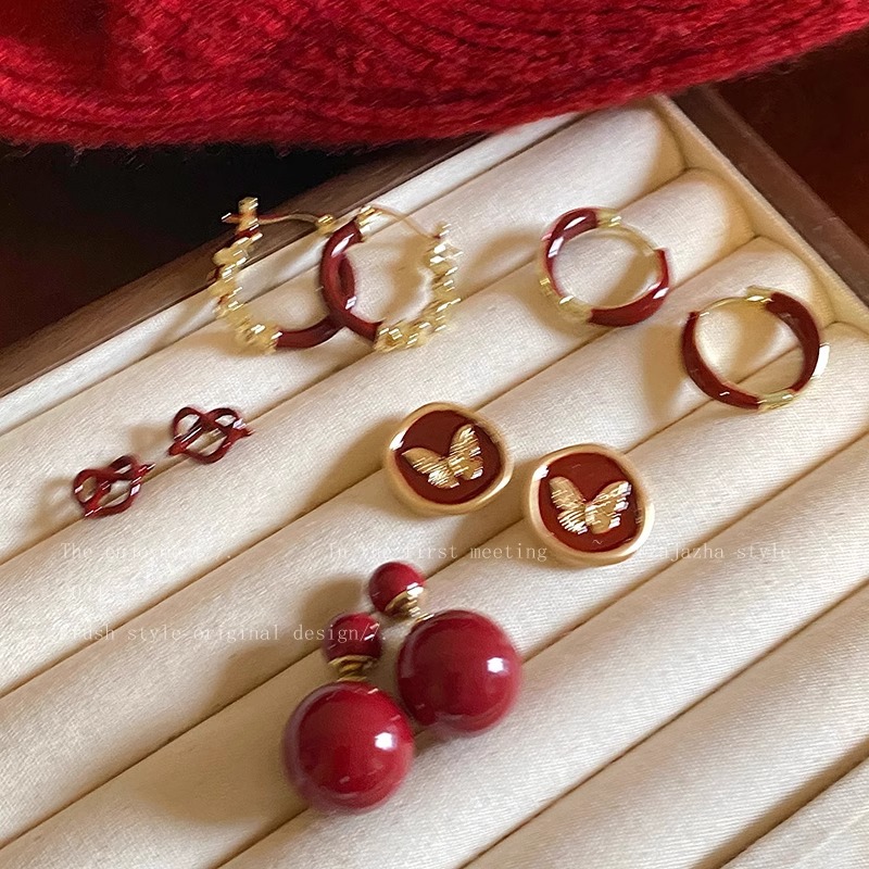赤いお祝いの福の字の耳のボタンの小さい大衆のデザイン感のシンプルな雰囲気の正月の雰囲気感の個性のファッションの耳のボタン