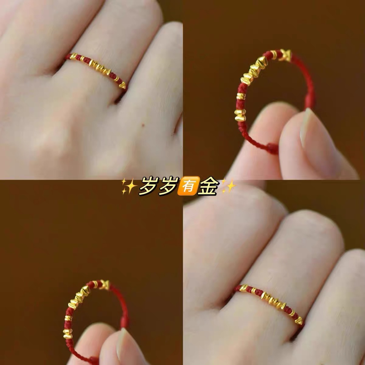 「歳歳有金」砕銀紅縄編み指輪大衆デザイン感シンプルファッション本命年ファッション指輪