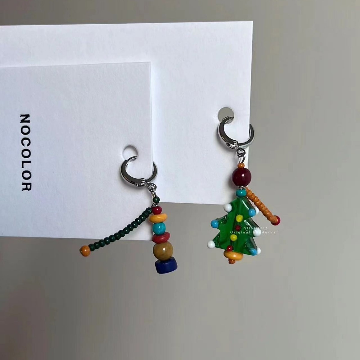 【クリスマスシリーズ】レトロなカラーの非対称耳ボタン2024新作祭りの雰囲気が可愛い耳ボタン