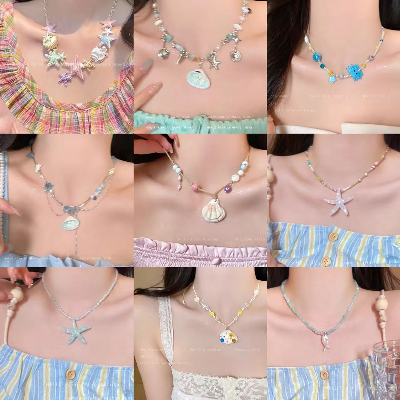 アンダーウォーターワールド~海辺のリゾートスタイルの貝殻、魚、ヒトデのペンダントネックレス、シンプルでファッショナブルで多用途なパーソナライズされたネックレス