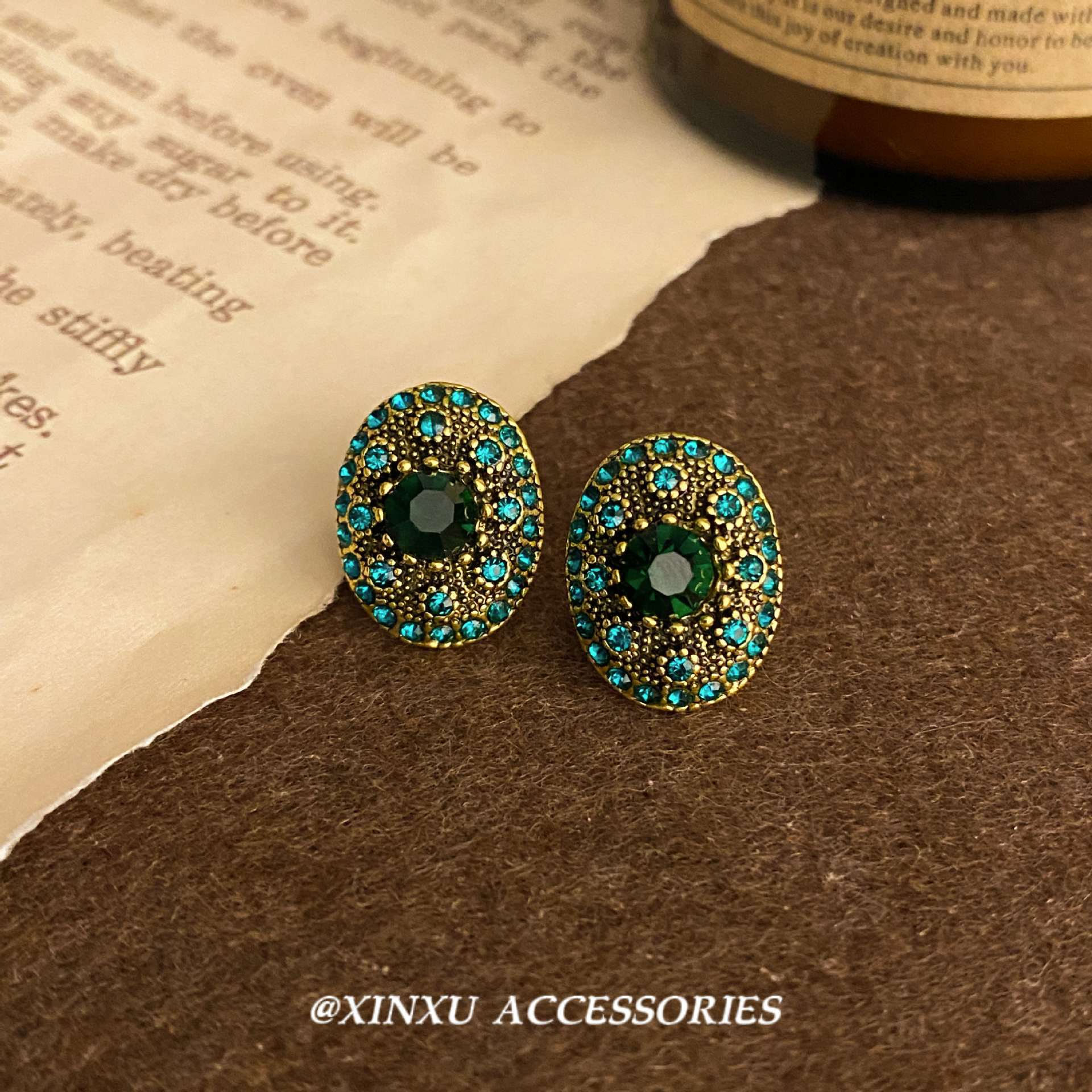 新商品の軽豪華グリーン重工高級イヤリング中古風フランスレトロフランス宮廷風イヤリング高級耳飾り