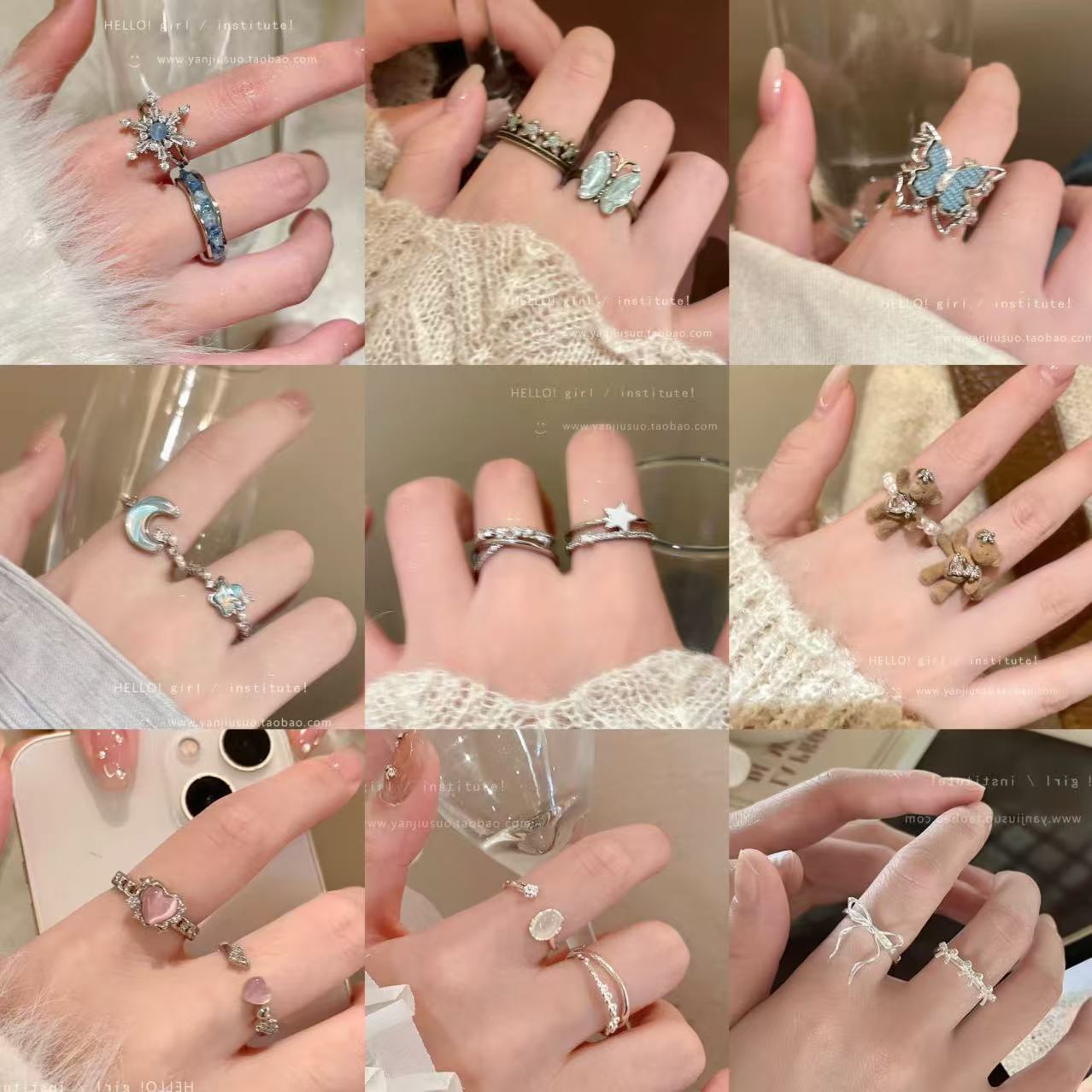 Ins風真珠ジルコン蝶指輪女性小衆高級感軽豪華カップルペアリング気質開口戒卸売り
