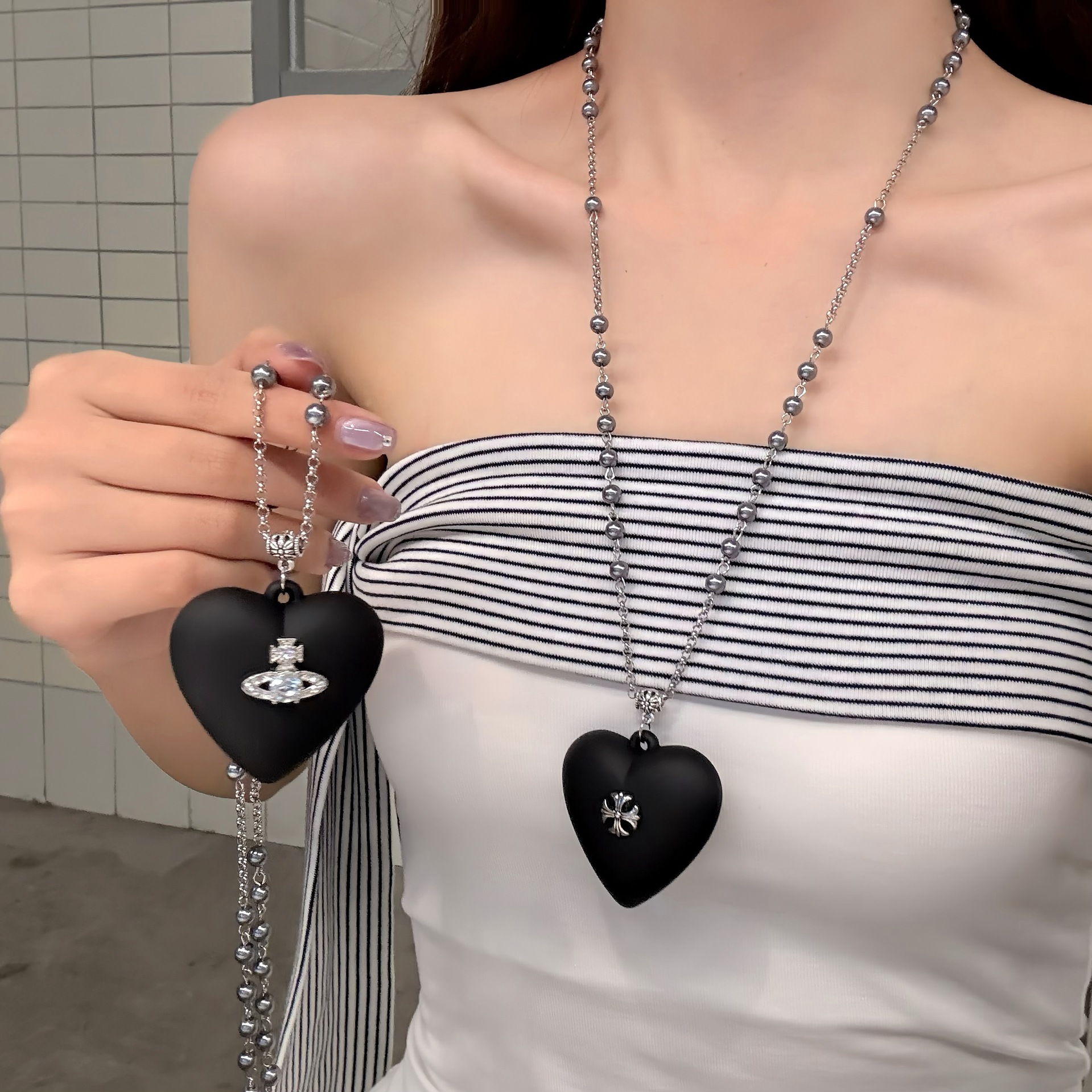 黒愛土星真珠ネックレス大衆デザイン感シンプルで贅沢で洗練された高級感のあるガードルチェーンアクセサリー