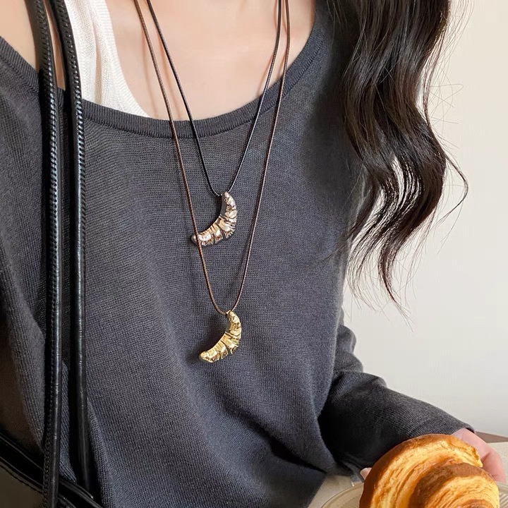韓国系のきわめてシンプルな牛の角は黒い縄のネックレスの2024の新型の気質の文芸の設計の大衆の個性の長いタイプの毛の服のチェーンを包みます