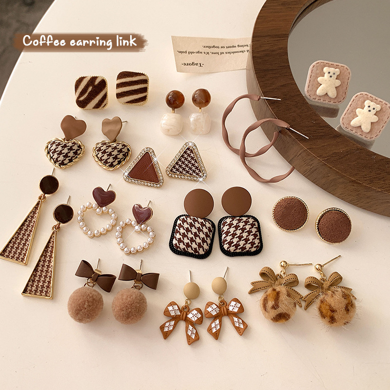 秋冬レトロなカレー色の毛玉ピアスのデザイン感があります。
