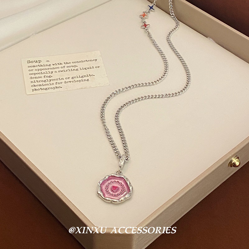 甘いクールな星ピンクの愛の円のネックレス2024新しいデザイン感シンプルな個性的な気質の高級感のあるネックレス
