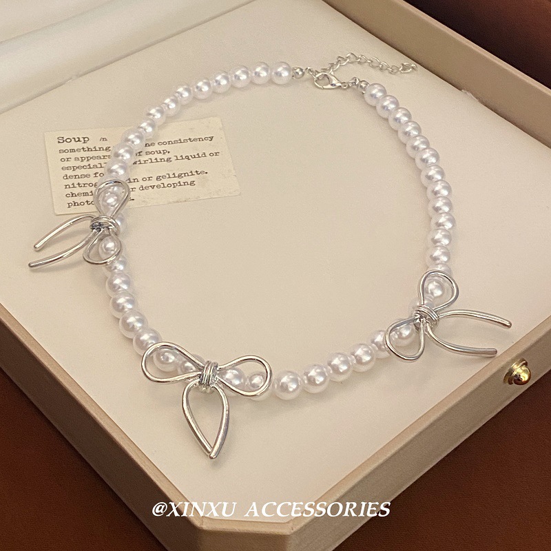 フランスの蝶結び真珠のネックレス2024の新型の甘い個性はシンプルで、豪華な気質の小さい大衆はネックレスの女性を合わせます。