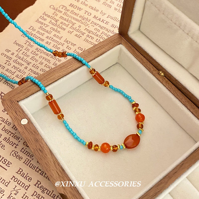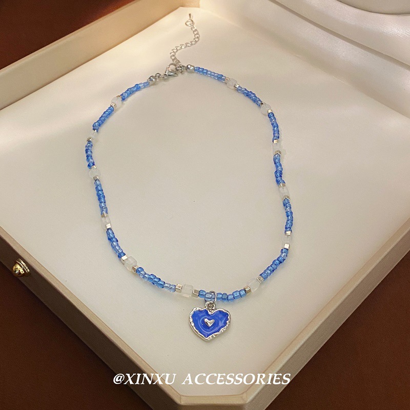 フランスのレトロな青い愛のビーズのネックレス