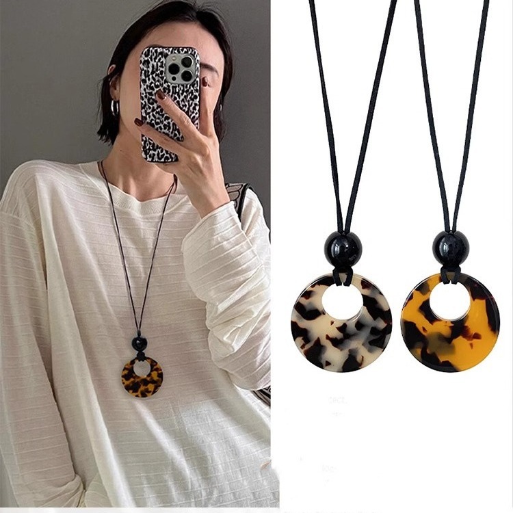 レトロな円形のヒョウ柄のべっこう色のペンダントのネックレス