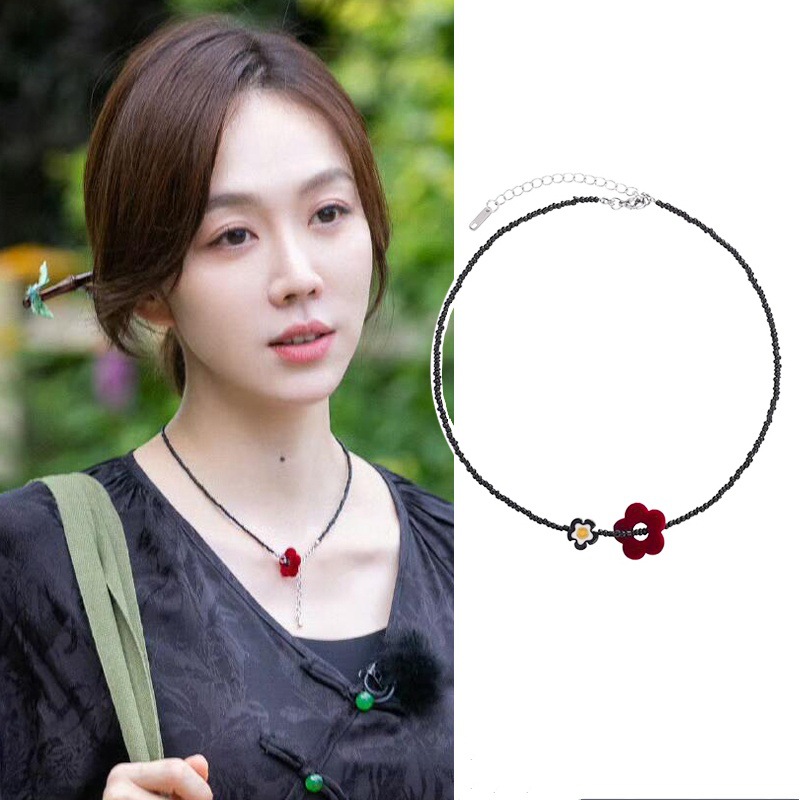 中華料理店の姜妍さんは同じベルベットの花のネックレスを持っています。
