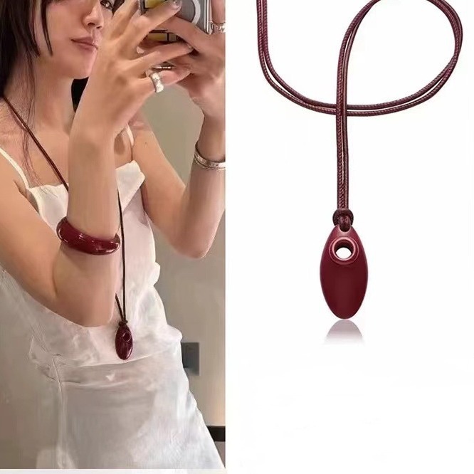 韓国ins同タイプのワインレッド楕円ペンダントネックレス2024新型大衆デザイン感高級感アクセサリーチェーン