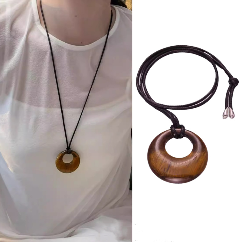 虎眼石円形ペンダントネックレス2024新型秋の高級感シンプルな気質個性レトロなネックレス