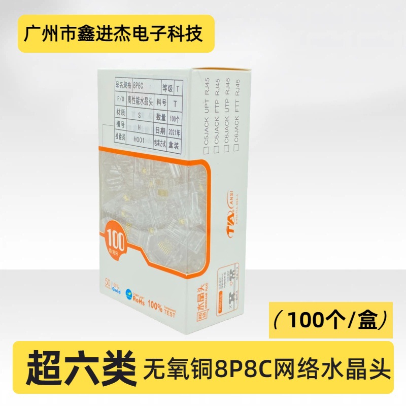 超六類水晶ヘッドRJ45金メッキcat6eネットワークケーブル水晶ヘッド100個/箱ギガビット水晶ヘッド