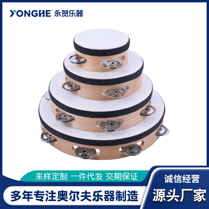 タムバーリンオルフ打楽器ケヤキリボンタンバリン幼教具模造羊皮6/8寸タンバリン