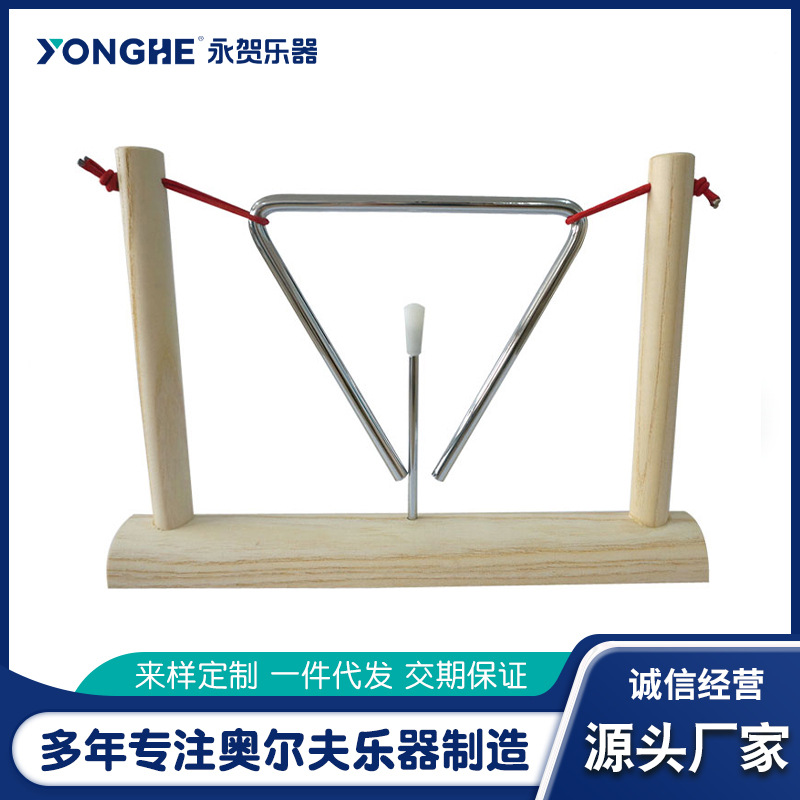 オルフの打楽器の三角鉄は木の棚の幼稚園の教具の子供の音楽のおもちゃを持ちます。