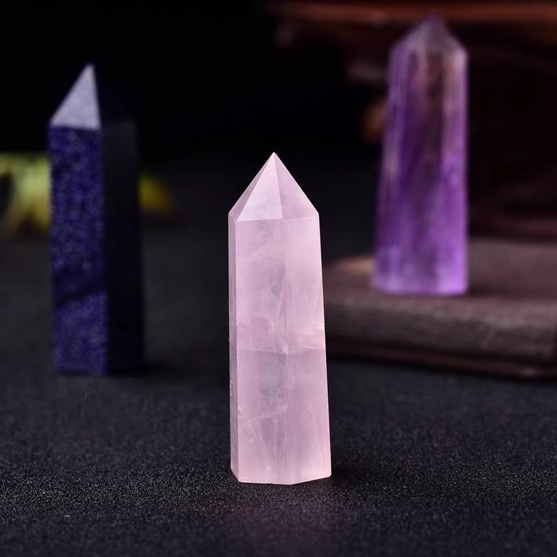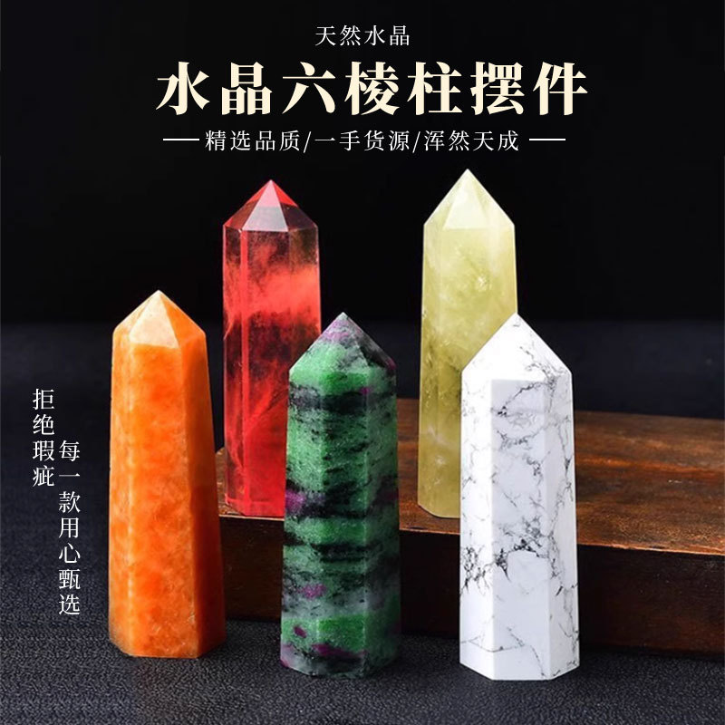 天然白紫粉水晶六角柱置物原石単先柱ホームリビングルーム事務デスクトップ置物卸