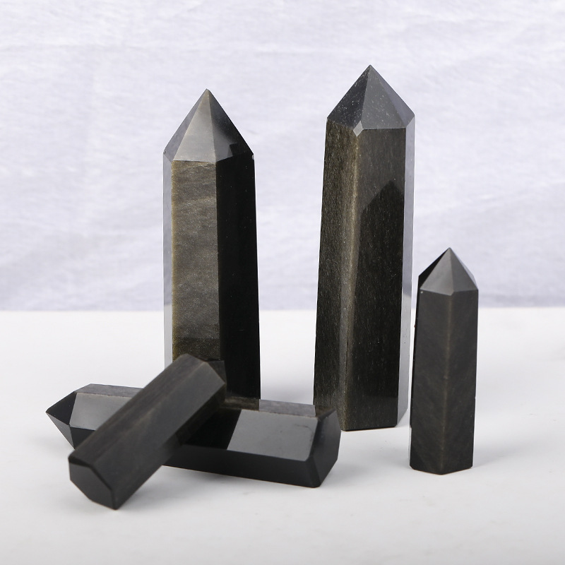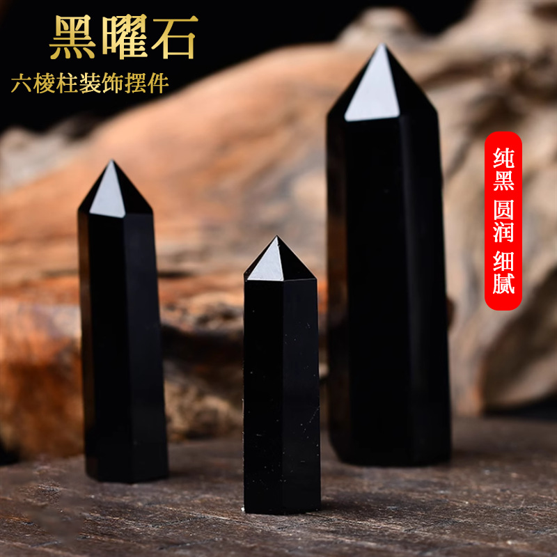 天然黒曜石六角柱置物原石磨き単先水晶柱ホームリビングルーム事務デスクトップ置物