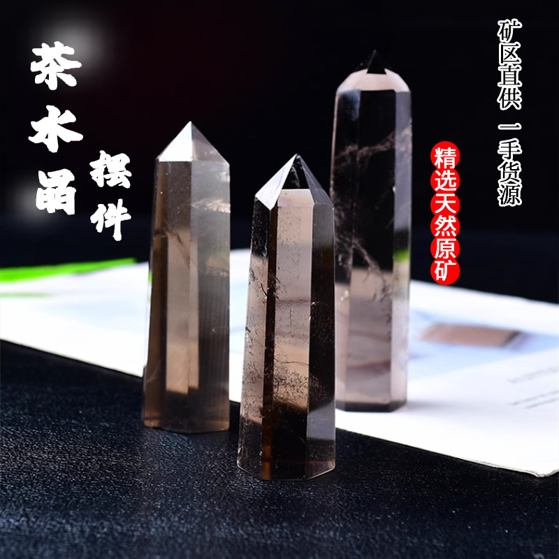 天然茶水晶単結晶・双結晶柱、六角柱原石研磨置物、リビング・オフィス用茶水晶置物