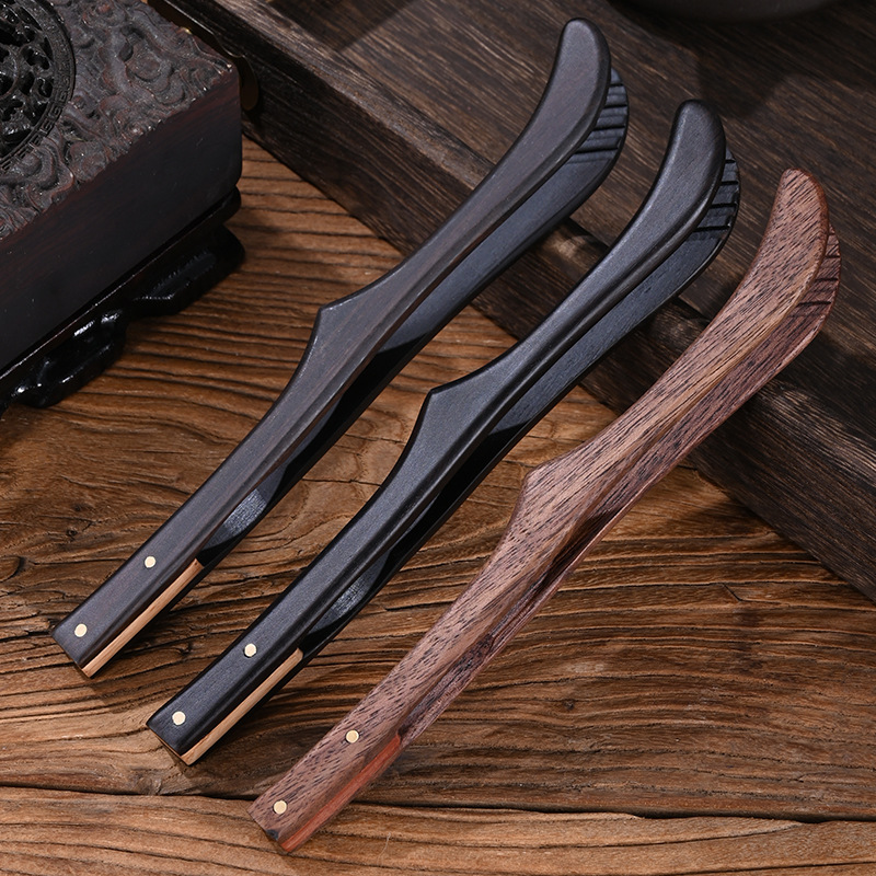 黒檀木真鍮茶クリップカンフー茶道部品ティーカップクリップメタルピンセットお茶クリップ