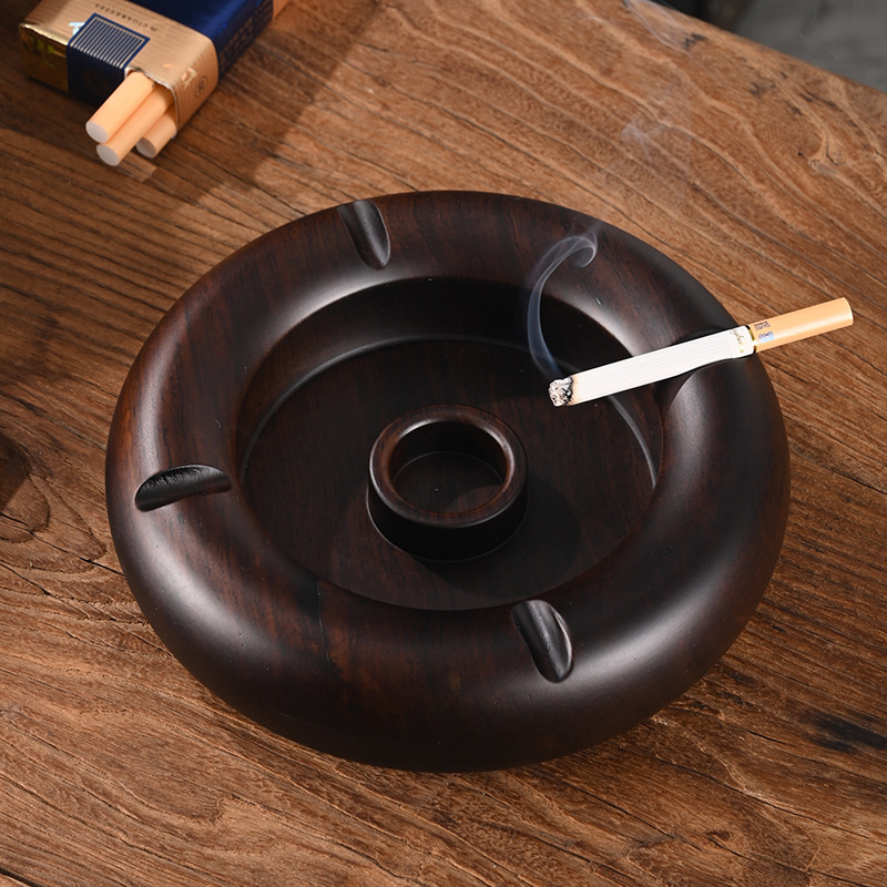 中国式黒檀実木灰皿創意個性家庭用リビングオフィス茶台商用防飛灰レトロ