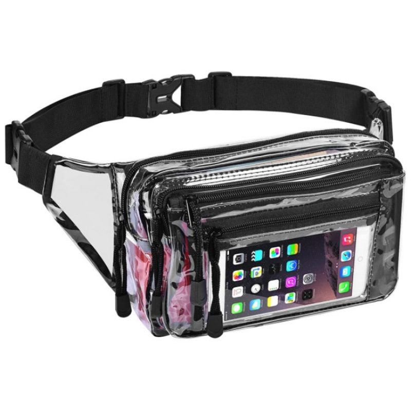 在庫あり卸売透明多機能ウエストバッグ仕事用ウエストバッグ旅行やスポーツ活動用ブラッククリアバッグ