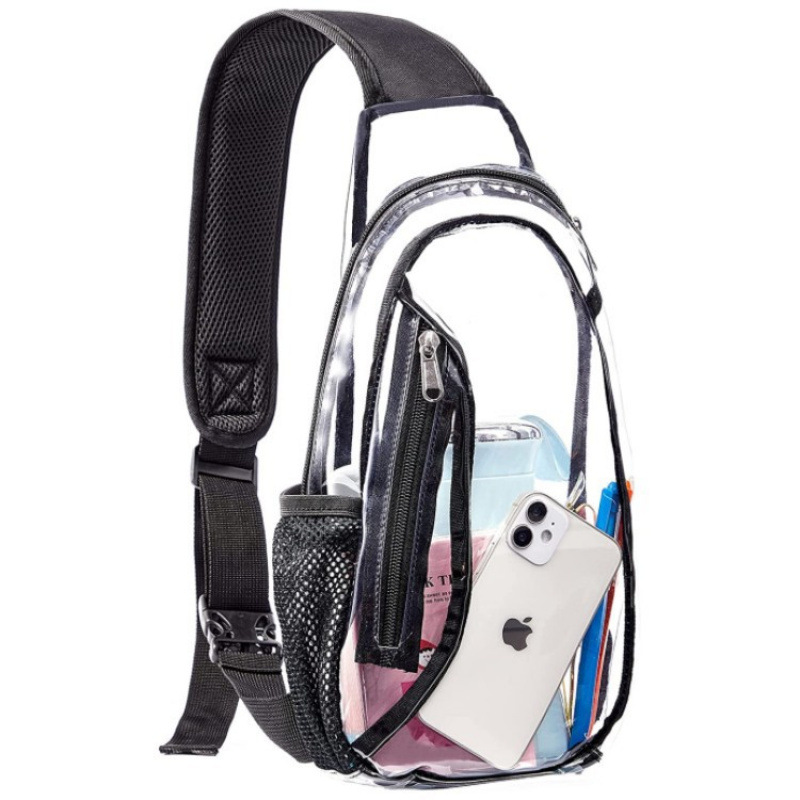 Amazon 新しい既製 PVC クロスボディ透明カジュアルチェストバックパックハイキングスタジアムやコンサートに最適