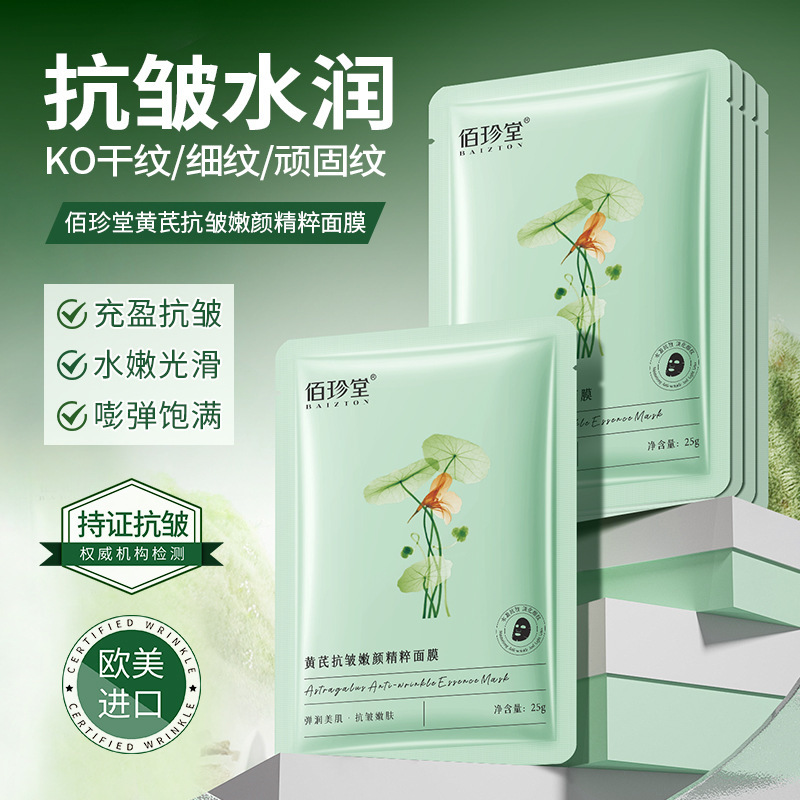 佰珍堂オウギ抗シワ軟顔精粋マスク片装保湿補水柔らかい肌マスク卸売り