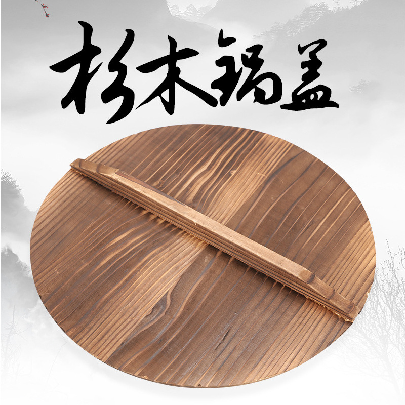 丸い杉の鍋の蓋の創意は柄の実木の大きい鍋の蓋の家庭用のレトロな古い木の農村の大きい鍋の蓋を持ちます。