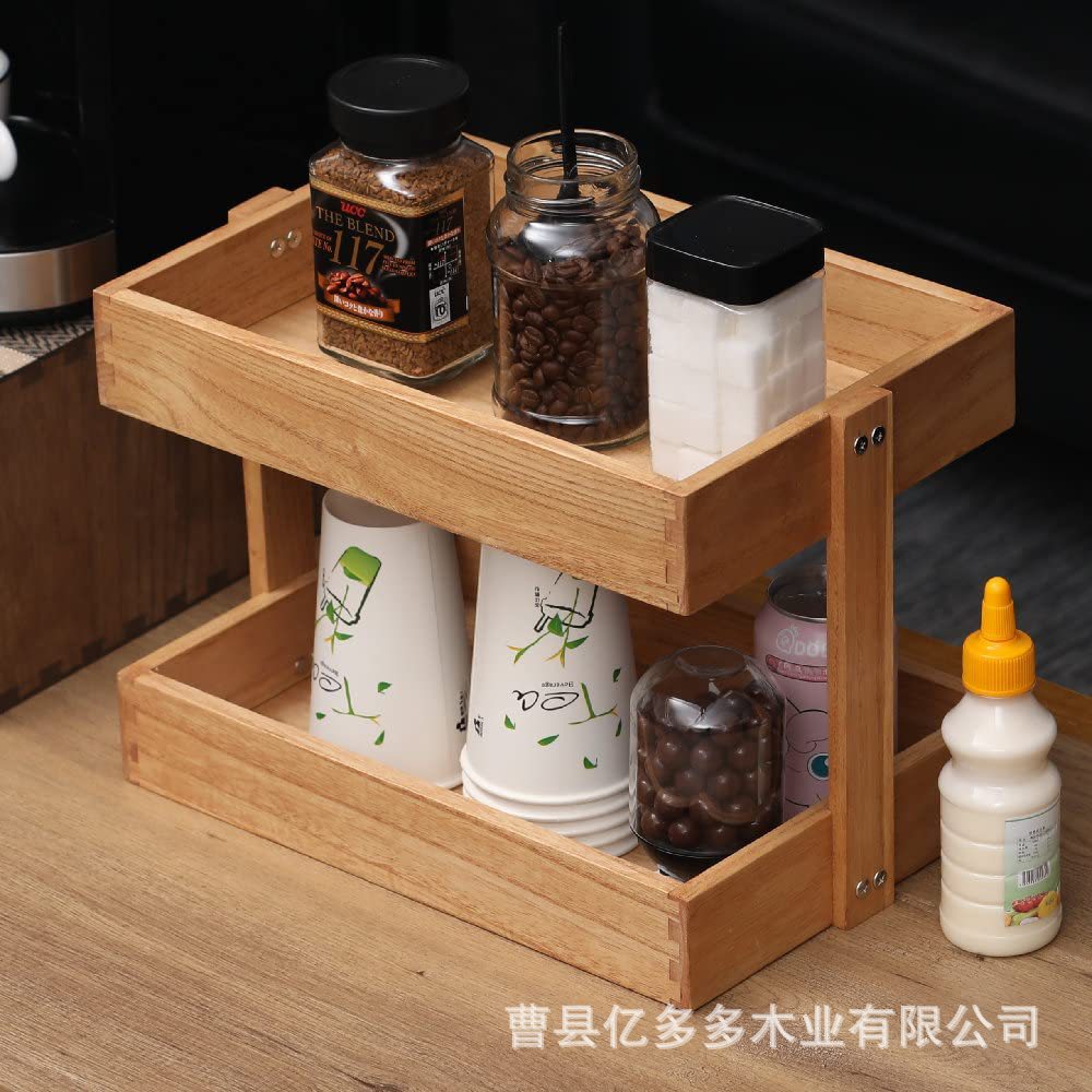 木製二重棚家庭用キッチン調味料収納棚浴室雑物実木整理棚メーカー卸売り