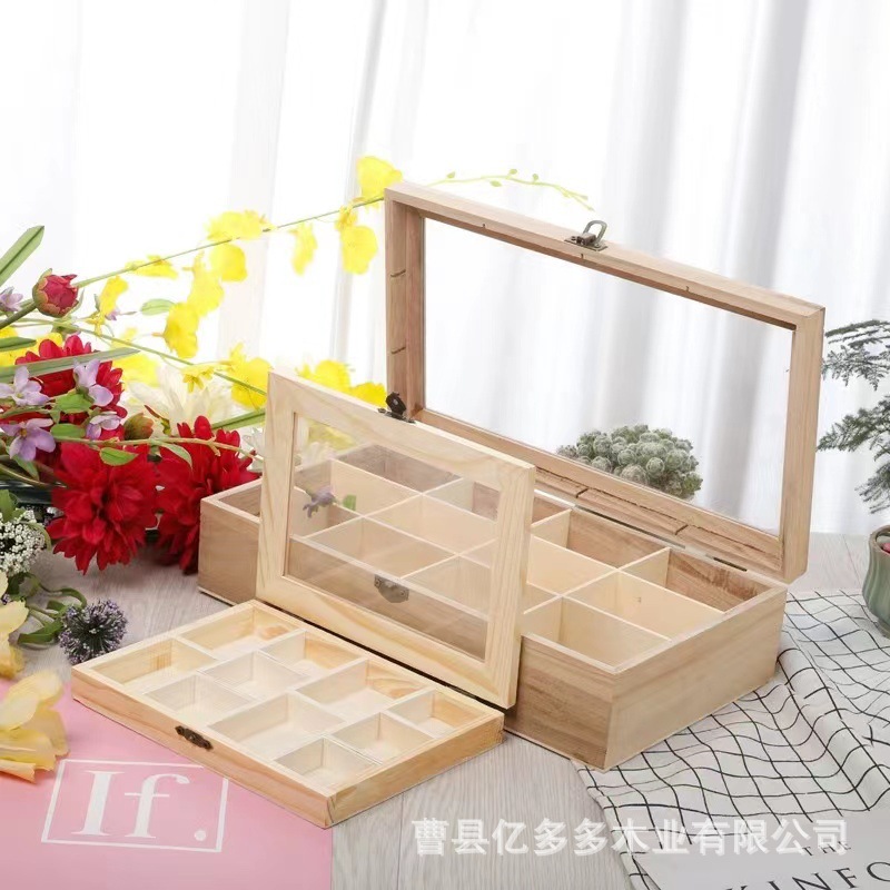 木製収納ボックスアクリルガラス引き出し式収納木箱多種規格角型実木収納ボックス卸売り