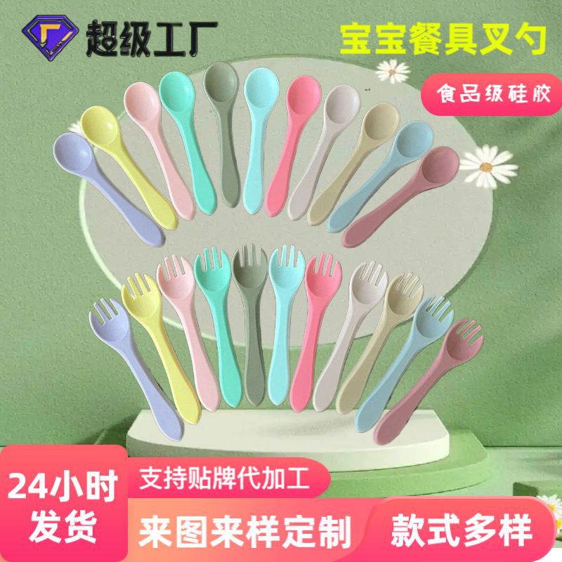 赤ちゃんの全シリカゲルスプーン赤ちゃんが食事を習っているスプーンセットのシリカゲルが一体成型して食器スプーンフォークを食べます。