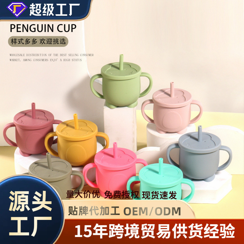 工場の赤ちゃんのシリカゲルの両耳のストローの杯は転びに耐えて高温に耐えます。