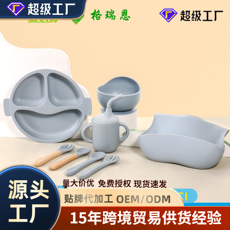 国境を越えた子供のシリカゲルの食事皿セット赤ちゃんの補助食皿愛の食事皿母子飼育食器セット
