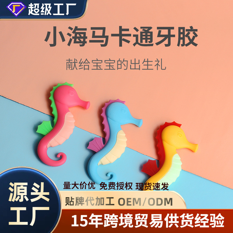 赤ちゃんの海馬の歯のゴムの食品級の歯磨きのゴムの柔らかいシリカゲルの2色の立体の歯のゴムの歯のおもちゃの歯磨き