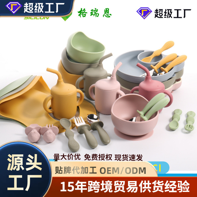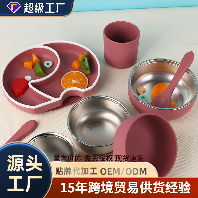 2023年メーカー新品ベビーシリコン補助ボウルベビー304ステンレス食品級シリコン食器セット
