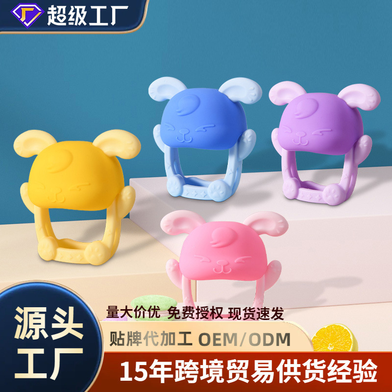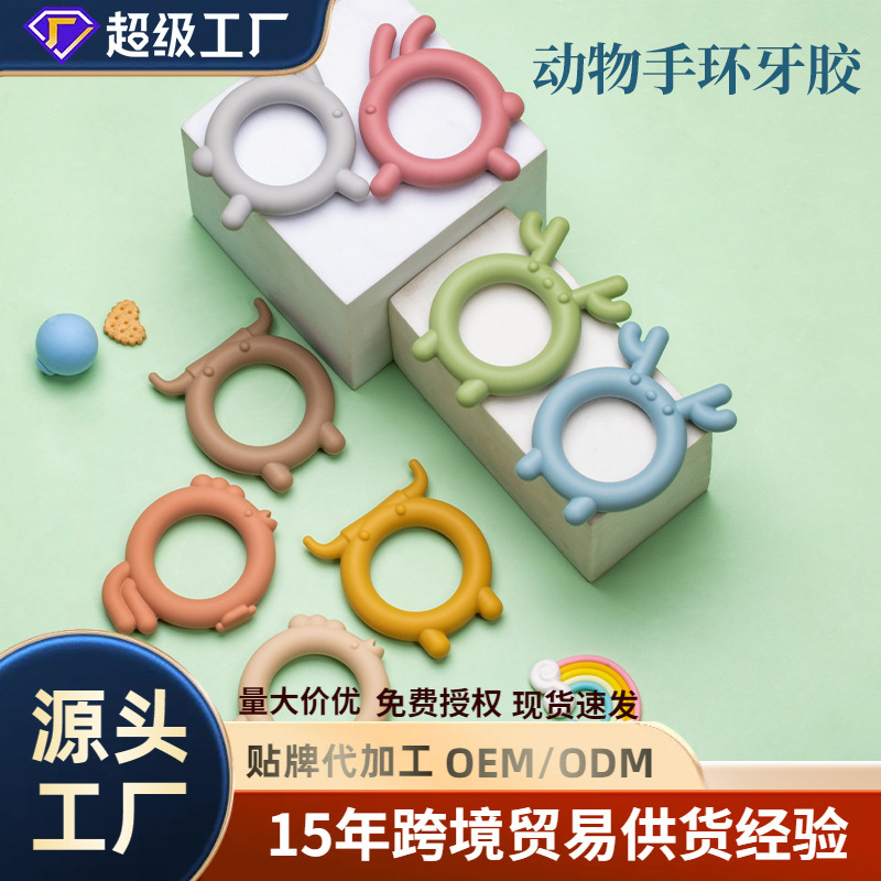 赤ちゃんのシリカゲルの歯のゴムの新商品の動物の手の環の食品級はゴムの赤ちゃんの歯をむいて棒をむいて歯のおもちゃの現物を出します。