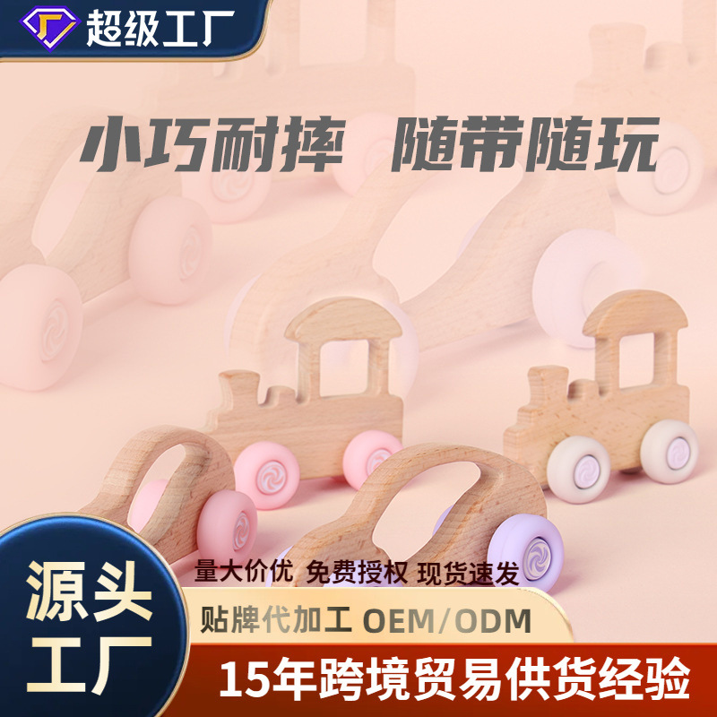 赤ちゃんの母子のおもちゃはシリカゲルのケヤキの木の列車のおもちゃの食品級の歯ぎしりの木の車の歯のゴムの2022の新製品を売ります。
