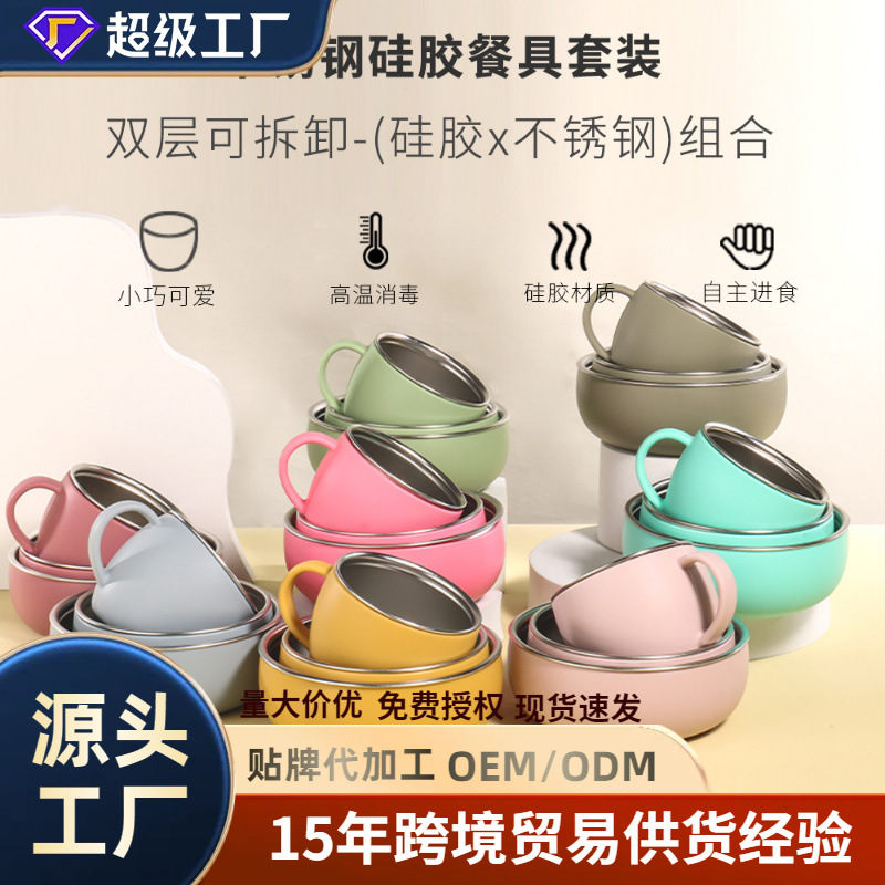 工場新品ベビーシリコンステンレス食器セットクリエイティブ304ステンレス子供用シリコン食器碗