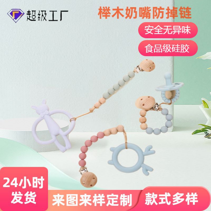 ベビーフードグレードのシリコンおしゃぶりチェーン、ブナ材クリップ、アンチバックルおしゃぶり、落下防止チェーン、ベビーおしゃぶりチェーン、シリコンチェーン