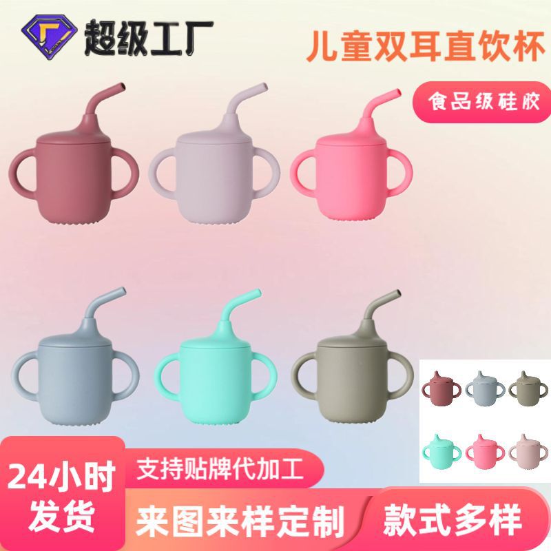2024年メーカーの新商品の赤ちゃんのシリカゲルのコップ動物のストローのコップの赤ちゃんは水の両手のコップを食べさせます。