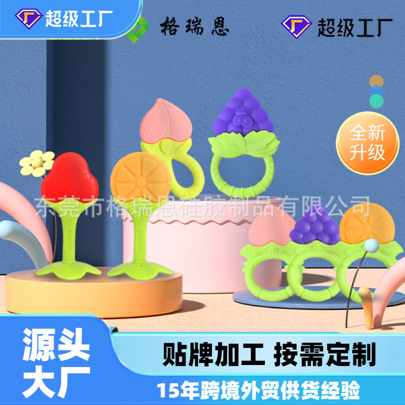 カスタマイズされたベビーフルーツフラットおしゃぶり 3 ヶ月歯が生えるスティック食品グレードのシリコーンおしゃぶり赤ちゃんの歯が生えるおもちゃ