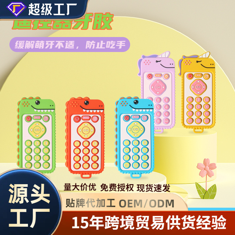 赤ちゃんのシリコンのユニコーンのリモコンの歯のゴムの取っ手のシミュレーションのボタンはおもちゃの食品級のシリコンの歯のゴムをかじります。