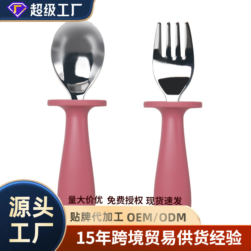 赤ちゃんシリカゲル短柄304スプーンフォークセット児童学食事訓練スプーン食品級シリカゲル補食スプーン