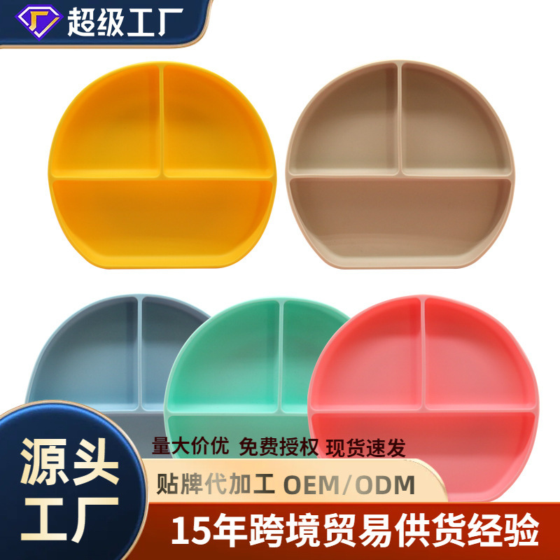 赤ちゃんのシリカゲルの分格の笑顔の食事皿の赤ちゃんの吸盤の食器のセットのメーカーの現物の赤ちゃんの食器