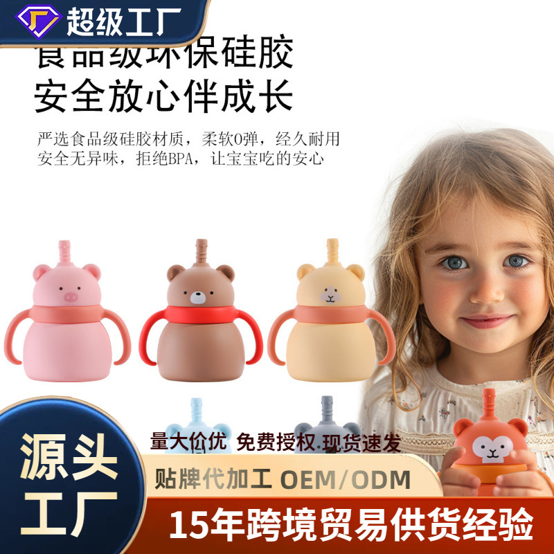 赤ちゃんのシリカゲルのコップの動物の両手の赤ちゃんは食器を食べて水のコップの大容量のシリカゲルのストローのコップを飲みます。