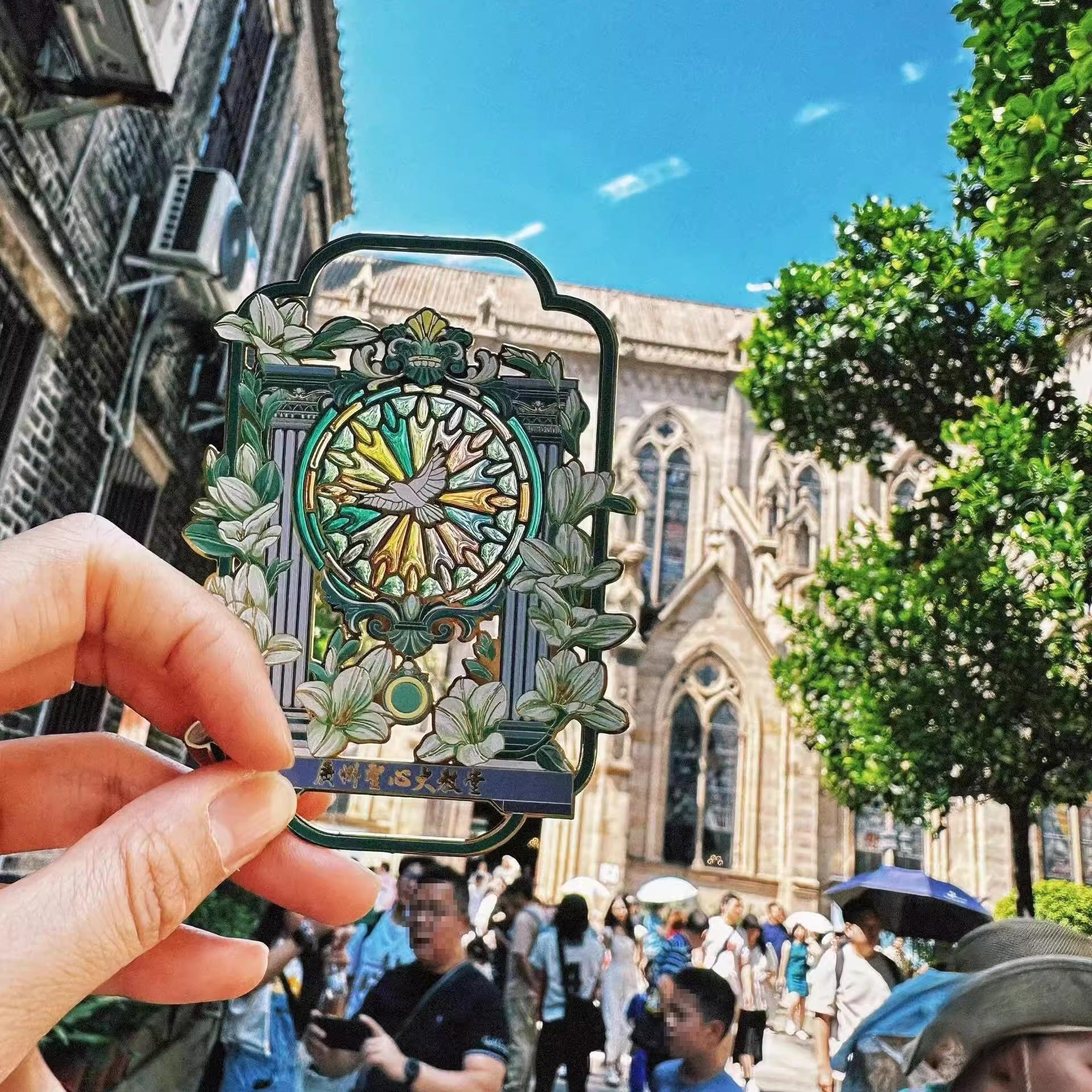広州文創聖心大聖堂の雄鷹の窓の花は光を通して色の冷蔵庫に金属の磁気を貼って旅行の記念品の贈り物を吸います。