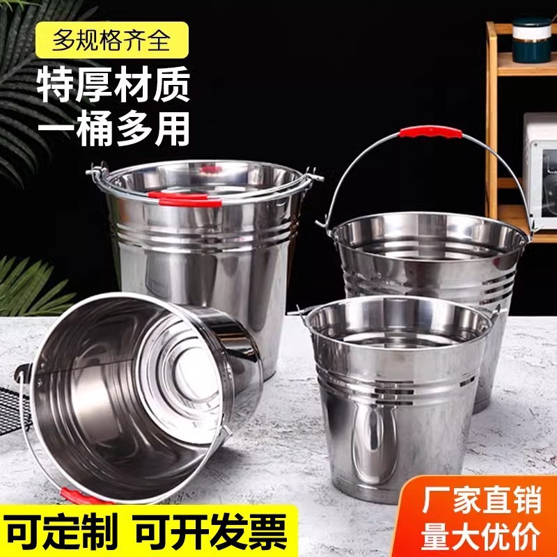 幼稚園の手持ち式のドラム缶のステンレスのバケツの食堂の台所の氷のバケツのゴミ箱は蓋の家庭用の鉄のバケツを持って厚くなります。